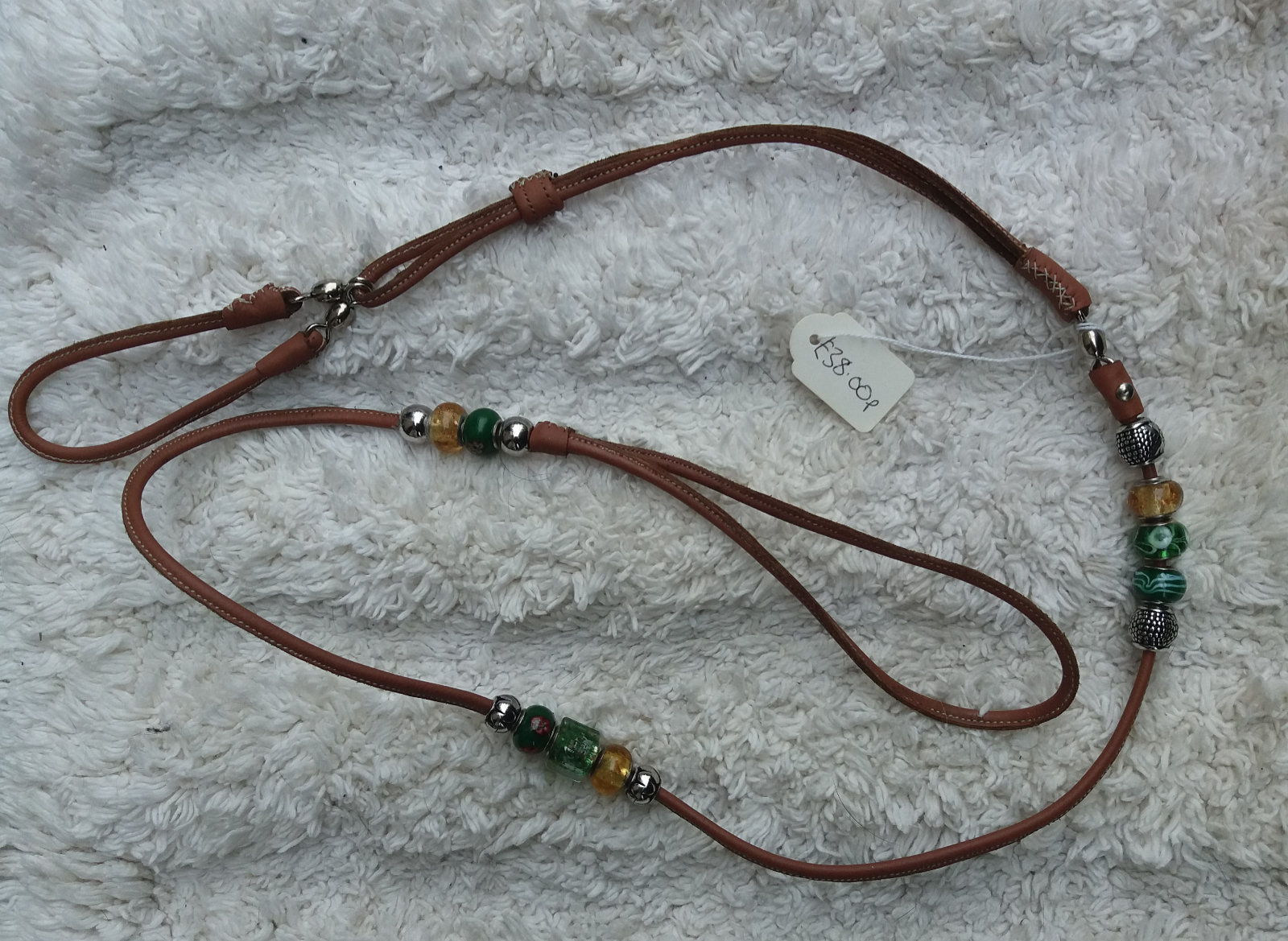 Elegant brown leather martingale show lead with delicate beads